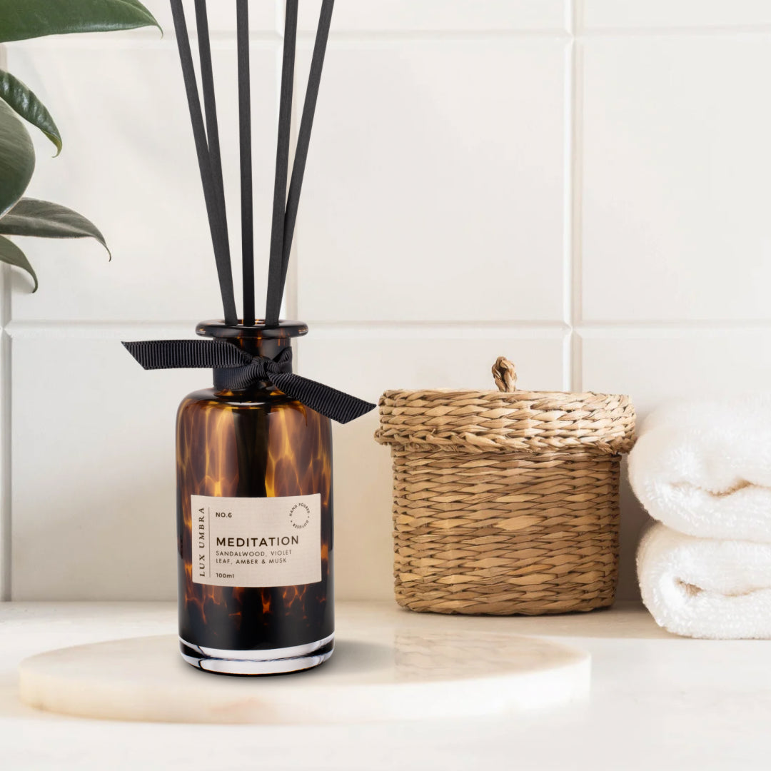 Our exquisite tortoiseshell glass jars are designed to be cherished and reused. Featuring ribbon detail and 5 black fibre reeds each jar is a piece of art in itself. Presented in a luxurious gift box tied with our signature black grosgrain ribbon, our diffusers make the perfect gift or a sophisticated addition to any decor.
