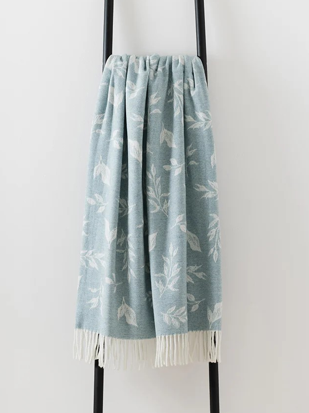 Wrap yourself in the warmth and elegance of our exquisite Scottish-made blanket, featuring a beautiful leaf pattern. Crafted from luxurious 2-ply merino lambswool, this blanket offers unparalleled softness and durability. The jacquard reversible design allows you to showcase its beautiful blue hues in two unique styles, making it a versatile addition to any home. Perfect for cosying up by the fire or enhancing your living space, this blanket will keep you warm while celebrating the beauty of Scottish artistry. Woven by Remony in Scotland, part of a family company that dates back to 1783.Β